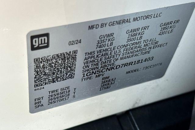 SEATS, SECOND ROW BUCKET, MANUAL, AUDIO SYSTEM, CHEVROLET INFOTAINMENT 3 PREMIUM SYSTEM WITH GOOGLE BUILT-IN COMPATABILITY (select service plan required, terms and limitations apply), including nav capability, 10.2 diagonal HD color touchscreen, includes multi-touch display, AM/FM stereo, Bluetooth® streaming audio for music and most phones; featuring wireless Apple CarPlay and wireless Android Auto capability for compatible phones, advanced voice recognition, in-vehicle apps, personalized profiles for infotainment and vehicle settings (STD), ENGINE, 5.3L ECOTEC3 V8 with Dynamic Fuel Management, Direct Injection and Variable Valve Timing, includes aluminum block construction (355 hp [265 kW] @ 5600 rpm, 383 lb-ft of torque [518 Nm] @ 4100 rpm) (STD), TRANSMISSION, 10-SPEED AUTOMATIC electronically controlled with overdrive, includes Traction Select System including tow/haul (STD).